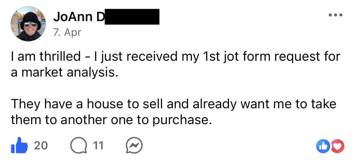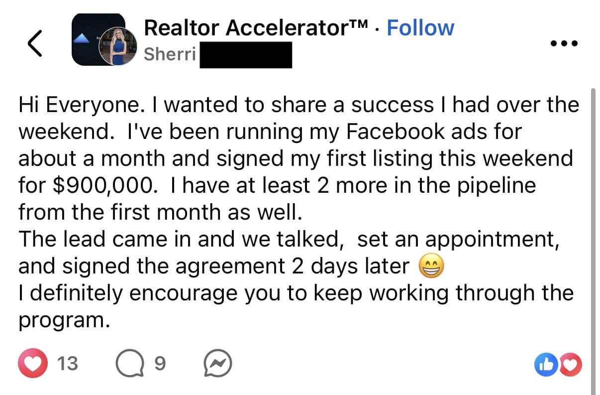 Sherri experienced a 100% increase in total sales, landing immediate listing appointments from her ads.