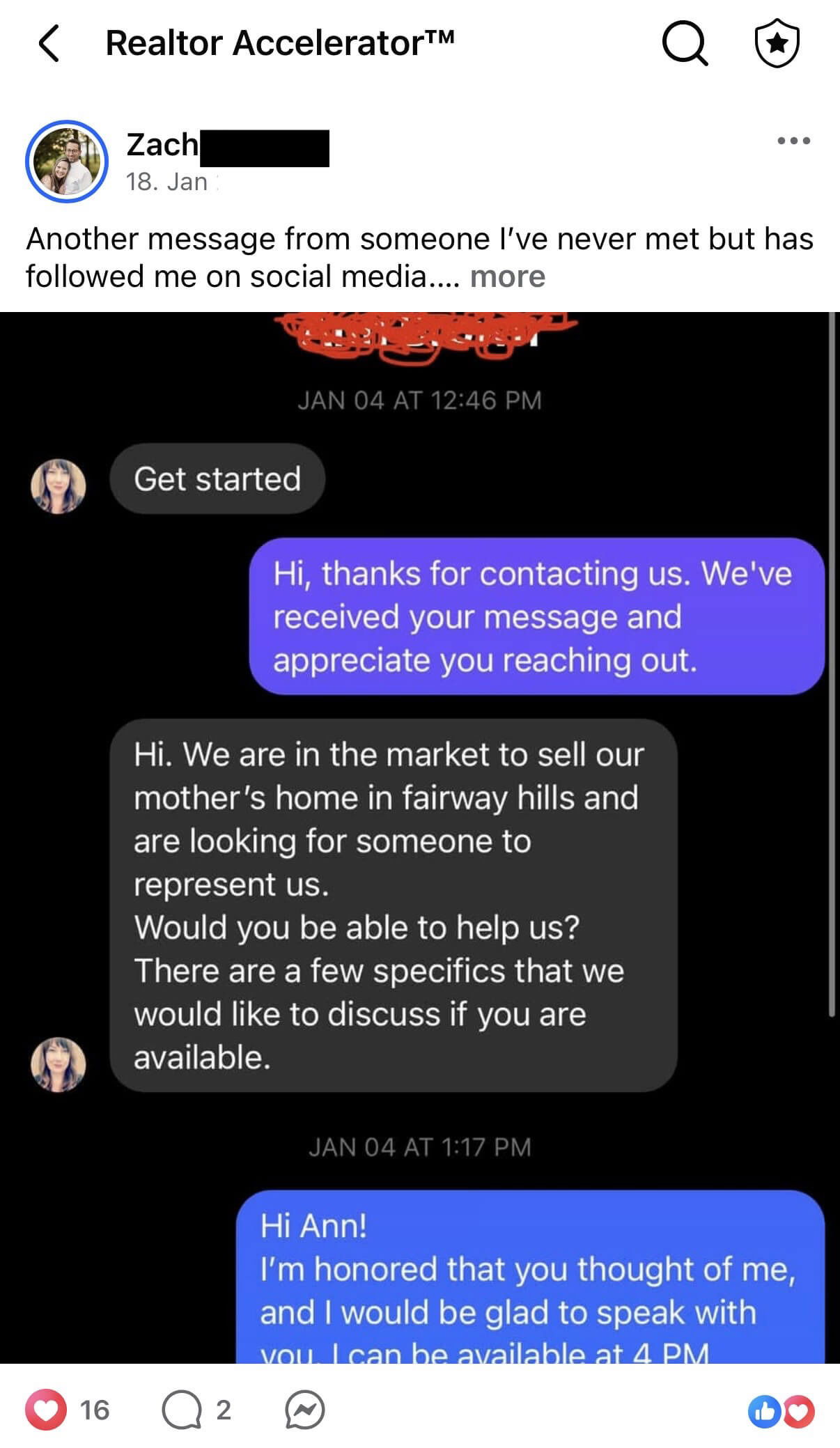 Zach stopped pitching cold leads, easily landing listing appointments directly through his social media.