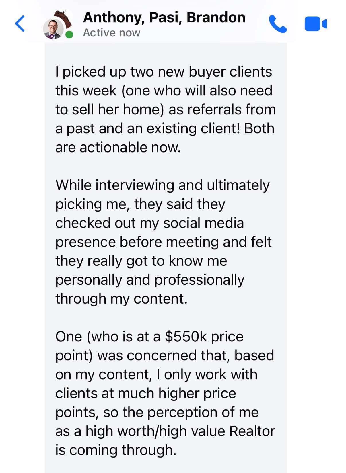 We've helped hundreds of agents ranging from top 10 ranked individuals & mid sized teams in the U.S. to brand new agents to become well-known locally and generate listing appointments through strategic personal branding.