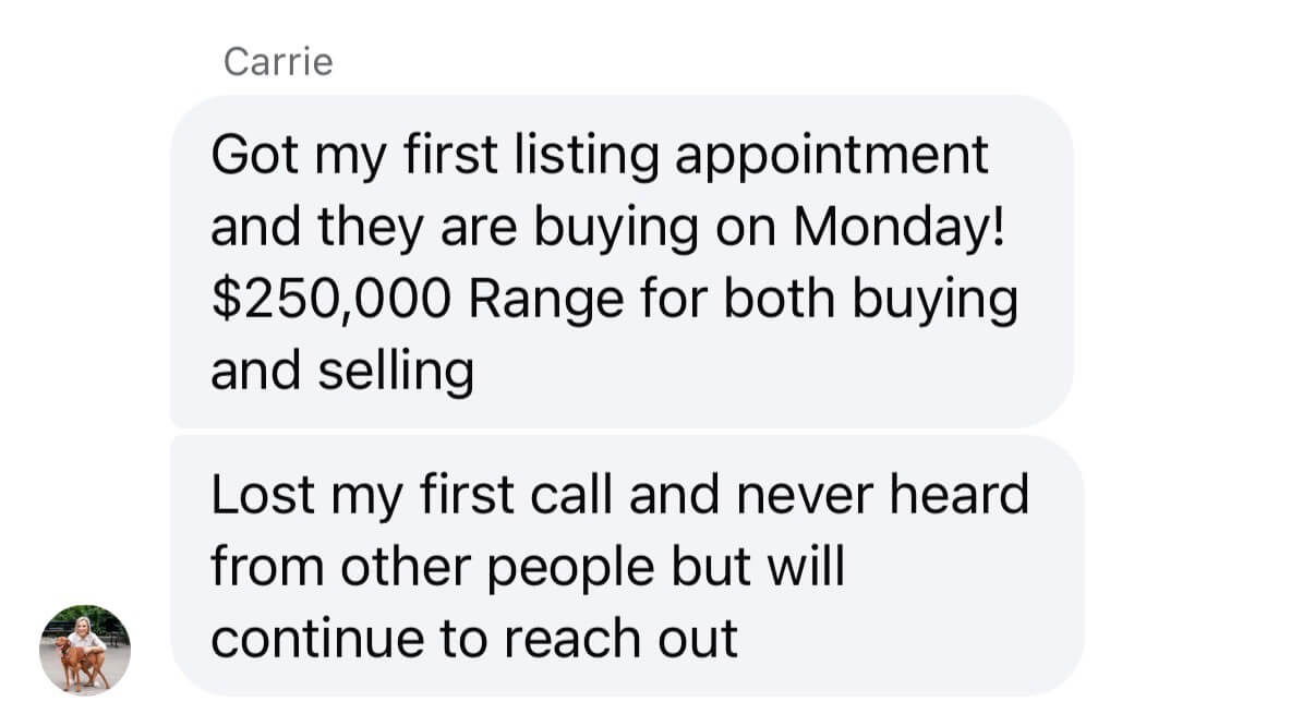 Colum landed his first listing and booked three more in-person seller appointments in his first week.
